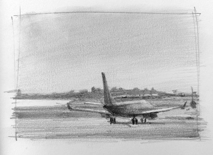Earlier this year, I’d said yes to a fundraising event for the Cascadia Art Museum on August 9th in Edmonds, WA, knowing full well that I had to board a small ferry to Hog Island Maine the very next day, August 10th, beginning a two-week artist residency there. When I said yes to Cascadia, I had no idea how I would make both events work logistically, as I typically drive everywhere, carrying my large-format supplies in the car. As I saw it, there was only one way to make both pursuits compatible. After the Montana event ended, I drove from Bozeman to Boston, MA, dropped my car at a friend’s place (thank you Alex!) And flew back to Seattle, a week out from the museum fundraiser, in time to do a scouting walking tour of the grounds.