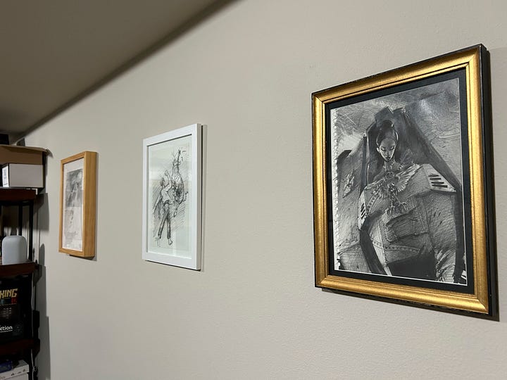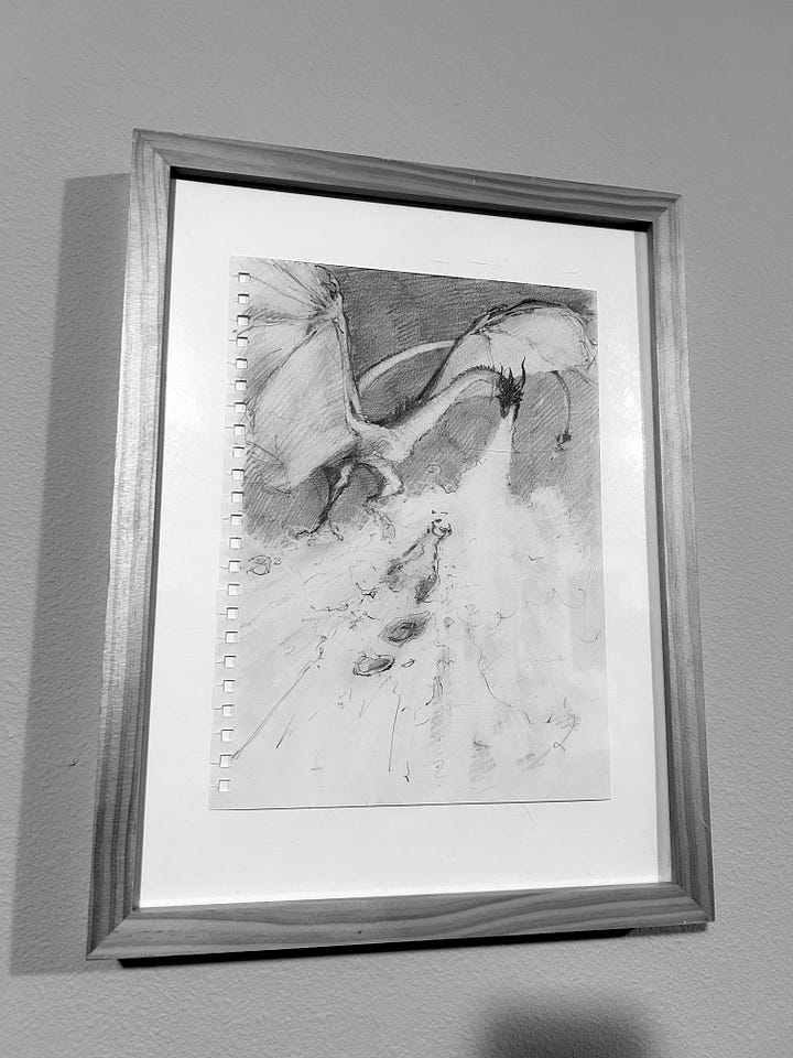 As I had a 9 x 12” matted frame in the car with me, I threw it in, wired it, hung it. Voila, a new addition to the wall of the Cave, wife-approved, even.